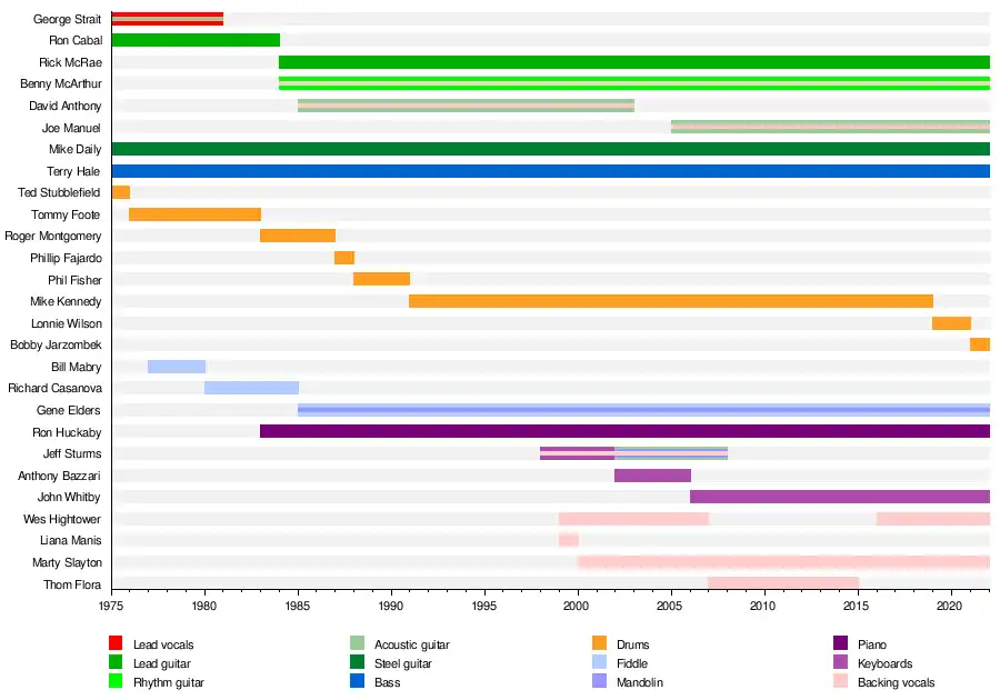 • George Strait – lead vocals, acoustic guitar (1975–1980)