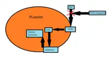 - ↑ Geiger, J.; Brich, J.; Hönig-Liedl, P.; Eigenthaler, M.; Schanzenbächer, P.; Herbert, J. M.; Walter, U. (August 1999). "Specific Impairment of Human Platelet P2YAC ADP Receptor–Mediated Signaling by the Antiplatelet Drug Clopidogrel". Arteriosclerosis, Thrombosis, and Vascular Biology. 19 (8): 2007–2011. doi:10.1161/01.atv.19.8.2007. PMID 10446085.