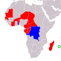 The African and Malagasy Union (AMU) (French: Union Africaine et Malgache (UAM)) was an intergovernmental organization created to promote cooperation among newly independent states in Francophone Africa. The organization derives its name from the name of the continent of Africa and from the former Malagasy Republic, now Madagascar. The organization disbanded in 1985.[1]