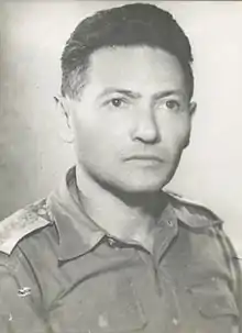 Hoter-Yishai was at the forefront of absolving Meir Tobianski posthumously. Tobianski had been put on trial in June 1948 and executed for being a traitor. Hoter-Yishai presided over a retrial at which he was found not guilty. He was tasked with coordinating the activities of the Brigade by Yehudah Arazi of the Aliyah B Organization.[1] He visited several of the Nazi camps and places where Jewish survivors were including Freimann Flak-Kaserne and the St. Ottilien Archabbey. In June 1945 he arrived at Theresienstadt. He also visited the camps at Dachau, Bergen-Belsen, and Mauthausen.[2]