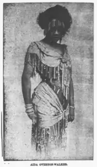 Aida Overton Walker (February 14, 1880 October 11, 1914), also billed as Ada Overton Walker and as "The Queen of the Cakewalk", was an American vaudeville performer, actress, singer, dancer, choreographer, and wife of vaudevillian George Walker. She appeared with her husband and his performing partner Bert Williams, and in groups such as Black Patti's Troubadours. She was also a solo dancer and choreographer for vaudeville shows such as Bob Cole, Joe Jordan, and J. Rosamond Johnson's The Red Moon (1908) and S. H. Dudley's His Honor the Barber (1911). Aida Overton Walker is also well known for her 1912 performance of the "Salome" dance at Hammerstein's Victoria Theatre. This was Aida's response to the national "Salomania" craze of 1907 that spread through the white vaudeville circuit.[1]
