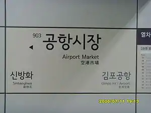 Airport Market station (Korean: 공항시장; Hanja: 空港市場) is a subway station on Line 9 of the Seoul Metropolitan Subway. The station is located in the Gonghang neighborhood of Gangseo District, Seoul.