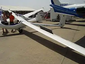 Control is through conventional elevator and rudder with full span slotted flaperons on the wings and Schempp-Hirth airbrakes on the upper surfaces at about 1/3 span. The undercarriage is a conventional retractable mono-wheel main undercarriage with a steel tipped rubber block tail-skid under the fin.[1]