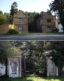 In 1780 the estate passed to his second cousin, William (a relation of the dramatist of the same name[11]). Many changes to their estate occurred during the William's ownership. The lake by the house was created by damming the stream. The wrought-iron Eagle Gates, at the north-west of the estate, were won at a game of cards so taken from Midgham.[12] To install them, the estate's north-west lodge (a dower house[9]) was dissected (removing the 60 square metres (650 sq ft) centre section). The estate's east gates are known as the Charity Gates; Congreve's daughters frequently sat by the gates and gave alms to the poor.[6]