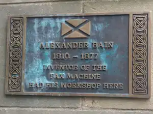 A commemorative plaque to Bain at his former workshop on Hanover Street in Edinburgh.