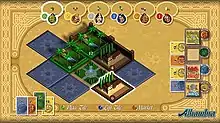 Alhambra (German: Der Palast von Alhambra, literally "The Palace of Alhambra") is a 2003 tile-based German-style board game designed by Dirk Henn. It was originally published in Germany by Queen Games in a language-interdependent version; an English-specific version was released in North America by the now-defunct Überplay. The game is a Muslim-themed update, set during the construction of the Alhambra palace in 14th century Granada, of the 1998 stock trading board game Stimmt So!, which in turn was an update of the 1992 mafia influence board game Al Capone; the original version was subsequently released as Alhambra: The Card Game. Upon its release, Alhambra won numerous awards, including the Spiel des Jahres award. Its success has led to the release of numerous expansion packs and spin-off games, and is becoming Queen Games' flagship franchise.