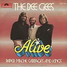 "Alive" is a ballad recorded by the Bee Gees for their album To Whom It May Concern. It was the second and last single from the album released on 10 November 1972 worldwide. The song was credited to Barry and Maurice Gibb and produced by the Gibbs and their manager Robert Stigwood.[1]