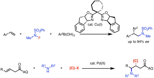 - ↑ Liwosz, T. W.; Chemler, S. R. (2012). "Copper-catalyzed enantioselective intramolecular alkene amination/intermolecular heck-type coupling cascade". J. Am. Chem. Soc. 134 (4): 2020–2023. doi:10.1021/ja211272v. PMC 3314298. PMID 22257169.