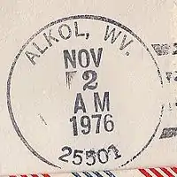 - ↑ U.S. Geological Survey Geographic Names Information System: Alkol, West Virginia, Geographic Names Information System, 1980-06-27. Accessed 2008-03-29.