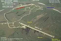 Allakaket Airport (IATA: AET[3], ICAO: PFAL[4], FAA LID: 6A8), is a state-owned public-use airport located two nautical miles (4 km) north-northwest of the central business district of Allakaket, a city in the Yukon-Koyukuk Census Area of the U.S. state of Alaska.[1] The airport is sometimes referred to as the New Allakaket Airport because it was constructed on a site southeast of the original airport which is now closed.[5]