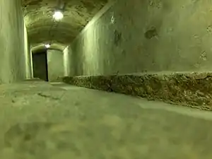 The Spanish city of Almería suffered up to 52 bombings from air and sea, with a total of 754 bombs dropped during the Spanish Civil War.[1] This led to the decision to create a system of underground shelters for the protection of approximately 40,000 civilians. These shelters measure more than 4.5 km long, and they are equipped with a surgery room and a food storage room. They were designed by the local architect Guillermo Langle Rubio,[2] being today the most important and better preserved shelters in all Europe.[3] These refuges have stood the most important attack in all Almería's history, the Bombardment of Almería, by the nazis in 1937.