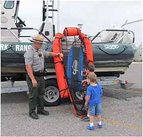 The lake given its location is the backdrop for year-round, water-based recreation opportunities, including boating, fishing, swimming, scuba diving and water-skiing.[5] Houseboats and other boating equipment can be rented from the park unit's concessionaires.[6] Amistad National Recreation Area in addition provides opportunities for picnicking, hiking, camping and hunting.[5] The area is rich in archeology and rock art, and contains a wide variety of plant and animal life.[5] In the fall, monarch butterflies by the thousands pass through the area during their 3,000 mile (4,800 km) migration from southern Canada to central Mexico.[7]
