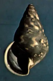 apertural view of the shell of Amphidromus coeruleus