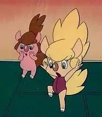 • Eiko Masuyama as Candy (キャンディー, Kyandī), Bubbles in English dub, a clumsy but romantic female shapeshifting apprentice pixie, who dreams to become a princess. Similar in appearance to a pig, she has thick blonde hair, a tail of the same color and wears a burgundy bodysuit. Masuyama also voiced Anna, the little match girl in the last episode.