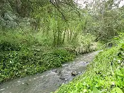 The creek begins in the hills north of Ringwood on the boundary of urban metropolitan Melbourne from where it flows for roughly 2–3 km through Park Orchards and around 4 km through Warrandyte, before emptying into the Yarra River. The creek is relatively uninhibited by weirs, dams or reservoirs and it floods often after heavy rain. It provides habitat for significant species, which include: platypus, rakali, koalas, powerful owls, rufous night herons, white-winged choughs and yellow-tailed black cockatoos.