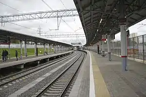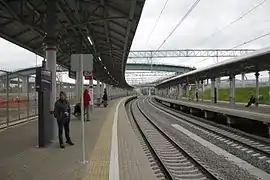 This station offers a transfer to the "Frezer" station of the urban/suburban rail line (one of 11 rail lines radiating from central Moscow). "Frezer" is on east-bound line that originates at the Kazansky railway station in central Moscow (so-called "Kazansky direction"). This line, just like any other, is served by commuter electric trains.