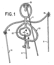 According to the patent, Aniforms are "open two-dimensional figures…constructed to simulate many objects." The figures are flexible to allow free manipulation, which is accomplished by "rods or wires … attached to the figures" for both support and movement. The controls are arranged or painted to be invisible to the audience.[2]