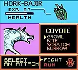 The game operates in a series of turn-based battles during combat. In a manner similar to the Pokémon video games, the object of Animorphs is to fight and defeat various animals and aliens in order to gain the morph (DNA) of that creature.[1] Sometimes, the player can use the animal's acquired skills outside combat. For example, snakes crawl up walls, fish swim, and bird morphs take to the air.[1] The game saves using a password system.
