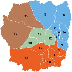 Antananarivo Province was divided into four regions of Madagascar - Analamanga, Bongolava, Itasy and Vakinankaratra. These four regions became the first-level administrative divisions when the provinces were abolished in 2009. They are sub-divided into 20 districts: