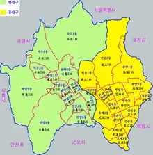 - ↑ "안양시 생활지리정보시스템". Archived from the original on 23 July 2011. Retrieved 29 September 2010.
