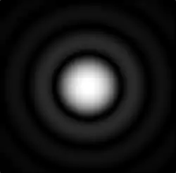 Apodization is used in telescope optics in order to improve the dynamic range of the image. For example, stars with low intensity in the close vicinity of very bright stars can be made visible using this technique, and even images of planets can be obtained when otherwise obscured by the bright atmosphere of the star they orbit.[9][10][11] Generally, apodization reduces the resolution of an optical image; however because it reduces diffraction edge effects, it can actually enhance certain small details. In fact, the notion of resolution, as it is commonly defined with the Rayleigh criterion, is in this case partially irrelevant. One has to understand that the image formed in the focal plane of a lens (or a mirror) is modeled through the Fresnel diffraction formalism. The classical diffraction pattern, the Airy disk, is connected to a circular pupil, without any obstruction, and with a uniform transmission. Any change in the shape of the pupil (for example a square instead of a circle), or its transmission, results in an alteration in the associated diffraction pattern.