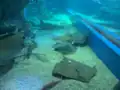 A dome-shaped tunnel fishtank with a total length of 20 m (66 ft) named "Wonder Tube" is installed in the facility. In Wonder Tube, about 15 species of rays of various sizes, including manta rays, are kept.[21] This aquarium has the only facilities in the world where Dwarf sawfish are kept. There are events such as an experience corner where you can feed krill to manta rays.[18][22]