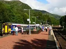 Ardlui railway station is a rural railway station, serving Ardlui at the north end of Loch Lomond, in Scotland. The station is located on the West Highland Line, sited 27 miles 43 chains (44.3 km) from Craigendoran Junction, near Helensburgh, between Crianlarich and Arrochar and Tarbet.[5] ScotRail manage the station and operate most services, others provided by Caledonian Sleeper.