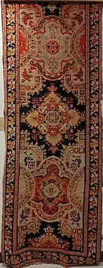 The term Armenian carpet designates, but is not limited to, tufted rugs or knotted carpets woven in Armenia or by Armenians from pre-Christian times to the present.[1][2][3] It also includes a number of flat woven textiles. The term covers a large variety of types and sub-varieties. Due to their intrinsic fragility, almost nothing survives—neither carpets nor fragments—from antiquity until the late medieval period.