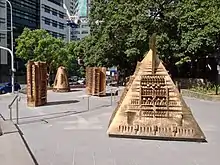 One of four columns by Pomodoro in the Amaliehaven park in Copenhagen, Denmark