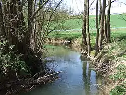 The source of the Aschbach is in the district of Bad Kissingen, south of the military training ground Hammelburg, near the Bildeiche. It starts southwards, along the street 2294 to Gauaschach, a district of Hammelburg. There it flows into the Main-Spessart district and changes its flow direction to the southwest. Via Obersfeld, Hundsbach, Bühler and Münster, it reaches Aschfeld (all are Gemarkungen of Eußenheim). Here it crosses the street Bundesstraße 27 and flows from the right into the Wern.