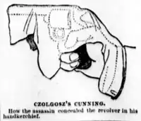 Illustration of how Czolgosz's gun was concealed. Chicago Eagle, September 14, 1901