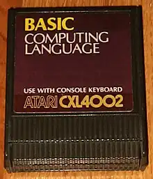 Atari BASIC is an interpreter for the BASIC programming language that shipped with the Atari 8-bit family of 6502-based home computers. Unlike most American BASICs of the home computer era, Atari BASIC is not a derivative of Microsoft BASIC and differs in significant ways. It includes keywords for Atari-specific features and lacks support for string arrays, for example.