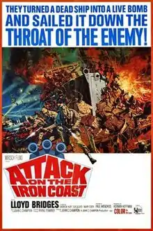 Attack on the Iron Coast is a 1967 DeLuxe Color Anglo-American Oakmont Productions international co-production war film directed by Paul Wendkos in the first of his five-picture contract with Mirisch Productions, and starring Lloyd Bridges, Andrew Keir, Sue Lloyd, Mark Eden and Maurice Denham. The film depicts an account of Allied Combined Operations Headquarters commandos executing a daring raid on the German-occupied French coast during the Second World War.[1] The plot is based on the commando raid on the French port of St. Nazaire and is reminiscent of the film The Gift Horse.
