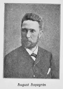 August Aspegren (1844-1912) was a Finnish stage actor. He belonged to the elite of the pioneer generation of actors at the Finnish National Theatre.