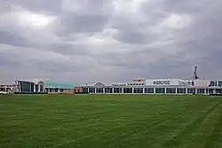 As the city grew, it attracted numerous factories and jobs. In 1849, after failing to attract the Galena and Chicago Union Railroad building west from Chicago, the Aurora Branch Railroad was chartered to build a connection from Aurora to the G&CU at a place called Turner Junction, now West Chicago. Additional lines were built, including a direct line to Chicago, and in 1855 the company was reorganized into the Chicago, Burlington and Quincy Railroad.[12][13] The CB&Q located its roundhouse and locomotive shop in Aurora, becoming the town's largest employer until the 1960s. Restructuring in the railroad industry resulted in a loss of jobs as passenger traffic dropped and the number of railroads decreased. The Burlington Railroad ran regularly scheduled passenger trains to Chicago.[14] Other railroads built lines to Aurora, including the Chicago & Northwestern Railway to Geneva,[15] the Elgin, Joliet and Eastern Railway to Joliet,[16] Chicago, Milwaukee & Gary to Rockford,[17] and the interurbans Chicago Aurora and Elgin Railroad, Aurora, Elgin and Fox River Electric Company, Chicago, Aurora and DeKalb Railroad, and Aurora, Plainfield and Joliet Railroad. With the exception of the EJ&E main line on the east side of the city, all lines other than the former Burlington lines have been abandoned.