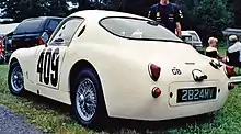 A modified version of the production Austin-Healey Sprite, it was recognized by the governing body of motorsport, the Fédération Internationale de l'Automobile, as a separate model in its own right, featuring Girling disc brakes as well as specified engine and chassis improvements. After its homologation (motorsport) on 17 September 1960, FIA regulations permitted the use of 'special bodies' and a small number of Sebring Sprites were subsequently fitted with coupé bodywork in aluminium alloy and glassfibre, the most strikingly attractive examples being those devised by well-known race and rally driver John Sprinzel, who had won the 1959 RAC British Rally Championship. Sprinzel commissioned the coachbuilders Williams & Pritchard, renowned for their racing and prototype work, to produce the bodies. These are usually said to have numbered six, but in fact eight are now known to have been made. Further Sprites received similar alloy bodywork from Alec Goldie and Fred Faulkner of the firm Robert Peel Sheet Metal Works (more usually known as 'Peel Coachworks'). The name 'Sebring Sprite' would become a generic term for any Sprite with disc brakes, and later for any Sprite with coupé or fastback bodywork.[1]