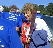 Fiona Stanley, Australian of the Year 2003, running with Summer Olympic Torch 2008