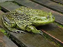 | Calyptocephalella gayi above, Mixophyes fasciolatus below | |