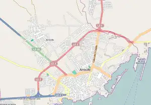 Since Arrecife is a coastal city, the ring road does not complete a full circle. On the northern side, LZ-3 begins at a roundabout by the island's main port, Puerto de los Mármoles. On the southern side, LZ-3 ends at a junction with LZ-2, the main road leading to the south of the island. LZ-3 is also connected to LZ-1, the main road leading to the north of the island. Thus, the island's north-south axis is LZ-1–LZ-3–LZ-2, connecting the northernmost town, Órzola, to the southernmost town, Playa Blanca.