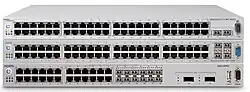 The Ethernet Routing Switch 5500 Series or (ERS 5500) is a series of stackable, Layer 3 switches used in computer networking. The ERS 5000 was originally designed by Nortel and is now manufactured by Avaya. Up to 8 ERS 5000 Series Switches may be stacked in a 640 Gbit/s fast stacking configuration.[2][3] This Switch was used as the access layer device for the 2010 Winter Olympics games.[4][5][6] The 817 Access Switches supported 8782 Voice-over-IP telephones.[7]