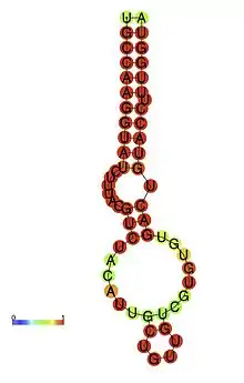 DHBV epsilon consists of a stem structure, a bulge and an apical loop (Fig. 1). The RNA structure was determined by chemical probing, NMR analysis and by mutagenesis.[3]