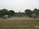 The Đức La pagoda, located in the Trí Yên commune of Yên Dung district, was built in the 12th century and is well preserved. It was then the centre of the "Trúc Lâm Trinity" (King Trần Nhân Tông, Pháp Loa and Huyền Quang monks) who established a school of Buddhist preaching and founded the Trúc Lâm religious sect. The pagoda is set in the backdrop of the Co Tien Mountain range at the Phuong Nhon confluence. The pagoda is surrounded by an expanse of rice-fields, amidst villages and hamlets around green bamboo groves. The "99 Nham Bien Mountain range" is seen at a distance. The pagoda is built on a south-west axis and has four principal zones. The first zone has the Ho and Thieu Huong Buddhist pagodas. There are two Thap Dien niches where very large statues of Thien Wong, Dia Tang and Long Than are installed. The Thien Huong Palace, adjacent to this, is an exquisite structure, which has three horizontal panels and a gilded door. The first chamber of Buddha is the architectural legacy of the Lê dynasty. The second zone is separated from the first zone by a brick yard. Within this zone is a simple building built with wooden planks and decorated with natural scenes of sky and clouds. It is the first ancestral shrine, and a panel here has the inscription "Trúc Lâm ho thuong" (A rendezvous of the Trúc Lâm Trinity) in Chinese characters. This inscription is engraved above the three statues of the Trúc Lâm Trinity. The third zone has the two-roofed bell tower. The fourth zone is another ancestral shrine with two statues made in the architectural style of the Nguyễn dynasty. The Đức La pagoda is also an important training centre of Buddhism. The pagoda also has wooden printing blocks of Buddhist sutras.[8]