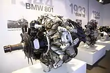 The BMW 801 was a powerful German 41.8-litre (2,550 cu in) air-cooled 14-cylinder-radial aircraft engine built by BMW and used in a number of German Luftwaffe aircraft of World War II. Production versions of the twin-row engine generated between 1,560 and 2,000 PS (1,540–1,970 hp, or 1,150–1,470 kW). It was the most produced radial engine of Germany in World War II with more than 61,000 built.