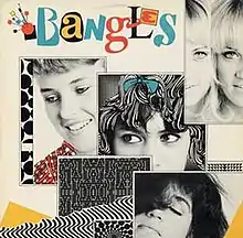 Bangles is the eponymous first EP by The Bangles.[3] It was released in 1982 by Faulty Products and reissued in 1983 by I.R.S. Records when Faulty Products went out of business. The songs remained widely unavailable thereafter, with only occasional rereleases of individual songs. The whole five-song EP was eventually reissued as part of the Bangles' 2014 compilation, Ladies and Gentlemen... The Bangles!.