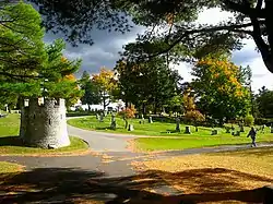 In 1832, a cholera epidemic in Saint John, New Brunswick, (part of the Second cholera pandemic) sent as many as eight hundred poor Irish immigrants walking to Bangor. This was the beginning of Maine's first substantial Irish-Catholic community. Competition with Americans for jobs caused a riot and resulting fire in 1833.[66] In 1849–50, the Second cholera pandemic reached Bangor itself, killing 20–30 within the first week,[85] 112 had died by October 1849.[86] The final death toll was 161. A late outbreak of the disease in 1854 killed seventeen others. The victims in most cases were poor Irish immigrants.[87] In 1872, a smallpox epidemic closed local schools. The Spanish flu pandemic of 1918, which was global in scope, struck over a thousand Bangoreans and killed more than a hundred. This was the worst 'natural disaster' in the city's history since the cholera epidemic of 1849.