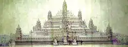 Pen and watercolor reconstruction of what the temple may have looked in the 11th century by Lucien Fournereau in 1889.