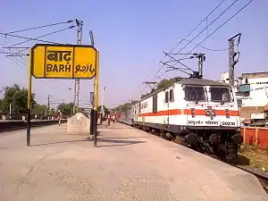 Barh railway station (station code BARH) is a railway station in the Danapur railway division of East Central Railway. Barh is connected to metropolitan areas of India, by the Delhi–Kolkata main line via Mugalsarai–Patna route. Barh station is serving the town of Barh in Patna district in the Indian state of Bihar.[1] Due to its location on the Howrah–Patna–Mughalsarai main line many Patna, Barauni, bound express trains coming from Howrah, Sealdah, stop here.