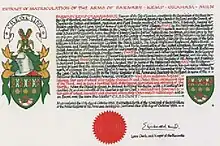 22. Extract of Matriculation of the Arms of Barnaby Miln. Lyon Court, 1998.