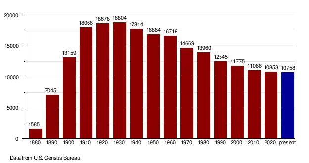 | 2022 (est.) | 10,758 | [7] | −0.9% |