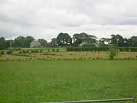 This small settlement is shown on General Roy's survey of 1747 - 55, under the name of 'Greenhill' in the singular and has two buildings indicated where the old school was situated. The school opened in the 1890s at the time that Hessilhead school closed. Greenhills closed circa 1958 and was demolished in the mid-1980s; having been used for some years as a glue factory by Strathbond Ltd who still trade from the Willowyard Estate, Beith. Mr McGregor was the last headteacher and the sports field had been the field lying across the Barrmill to Burnhouse Road.[39] A smithy stood at the crossroads on the Borestone farm side of the hamlet. This hamlet is named after the artificial mound, a Moot, Law or Justice hill that once stood here.